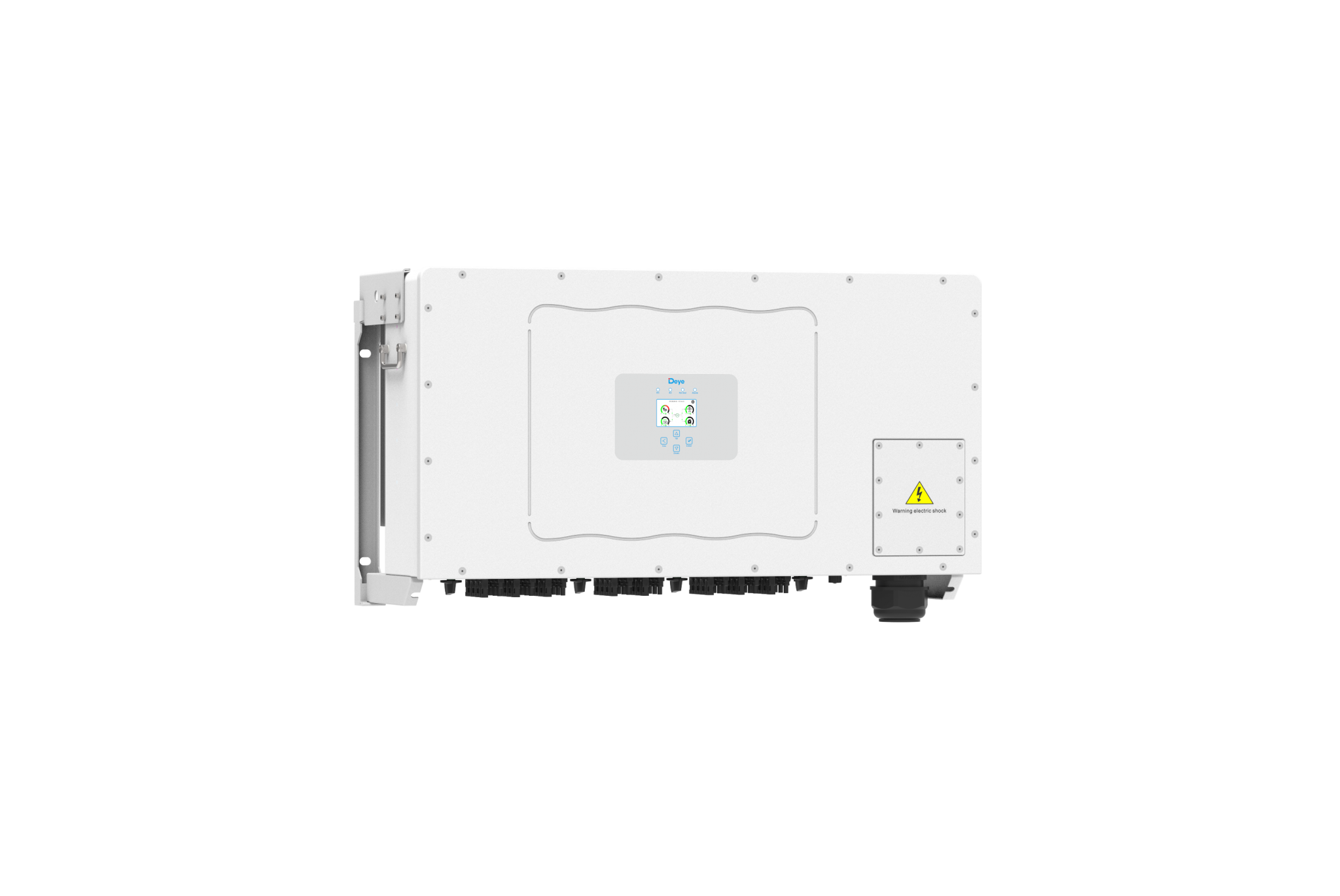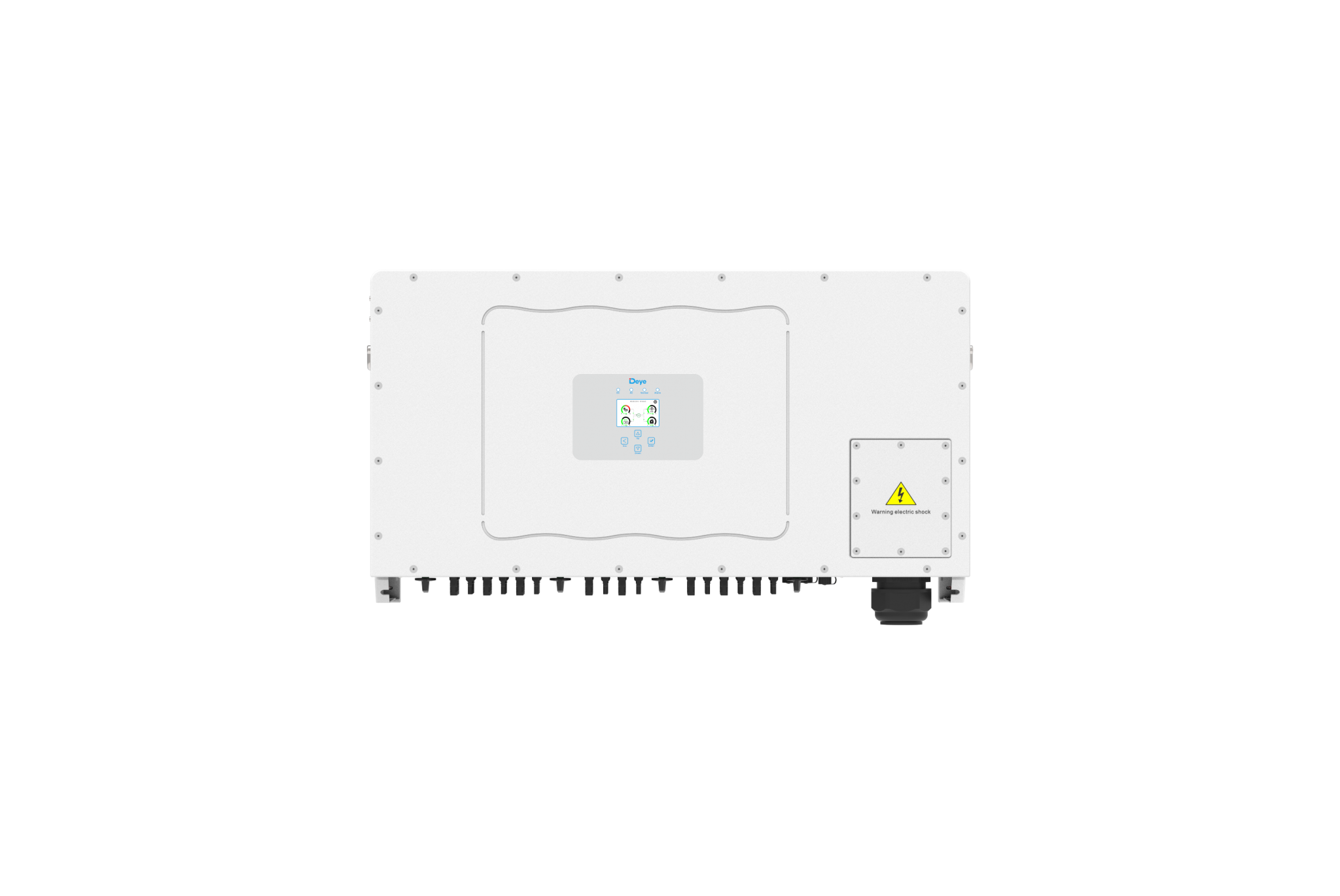 Габарити пристрою складають 1006×516×325,5 мм, а вага — 103 кг, що забезпечує зручність монтажу та обслуговування. Інвертор має вбудований LCD-дисплей, який надає інформацію про стан системи та дозволяє налаштовувати параметри роботи.
