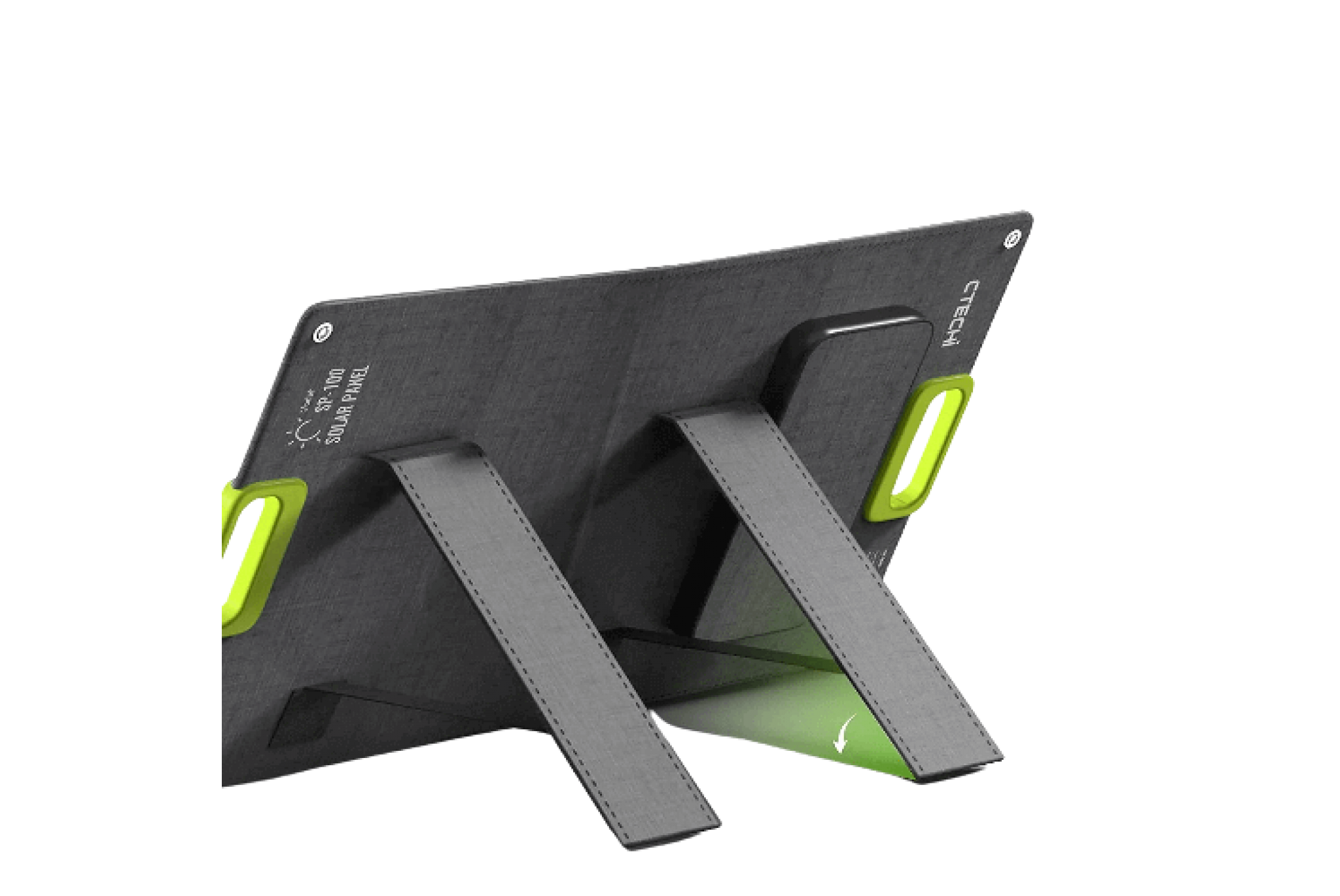 Однією з ключових особливостей SP-100 CTECHi є її портативність. Панель легка і компактна, завдяки чому її легко транспортувати та переміщати з одного місця в інше. Пристрій має вбудовані підставки, які дозволяють встановити його під ідеальним кутом для отримання сонячного світла.